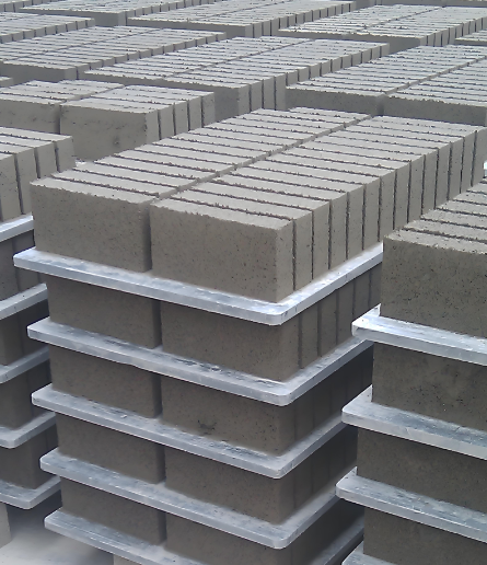 Pallets made of PVC material, used to support and transport bricks